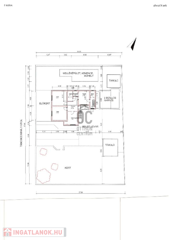 A ház 1201 m2 es telken található,melynek utcafront szélessége 37 m.